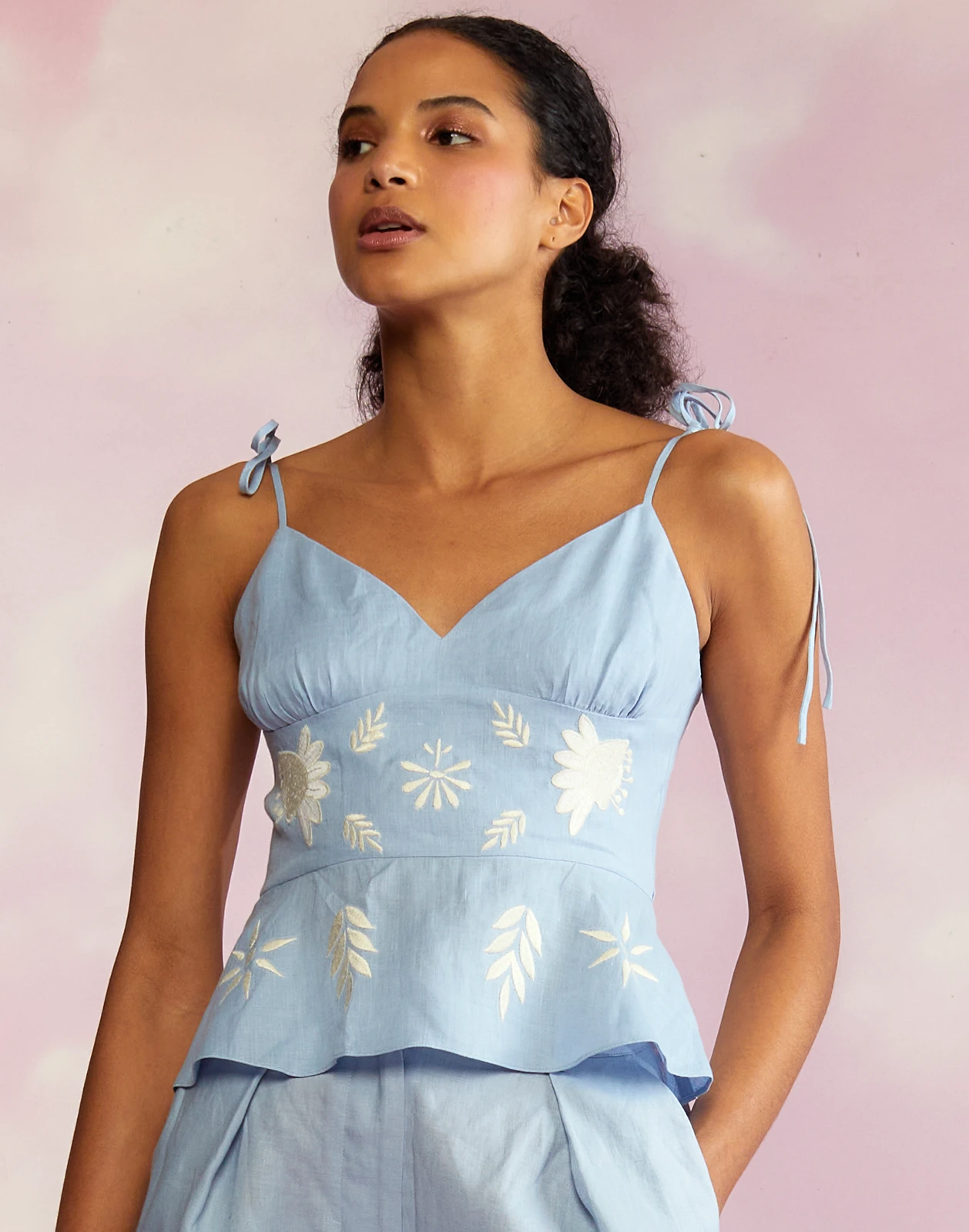 Linen cami with embroidered detail.