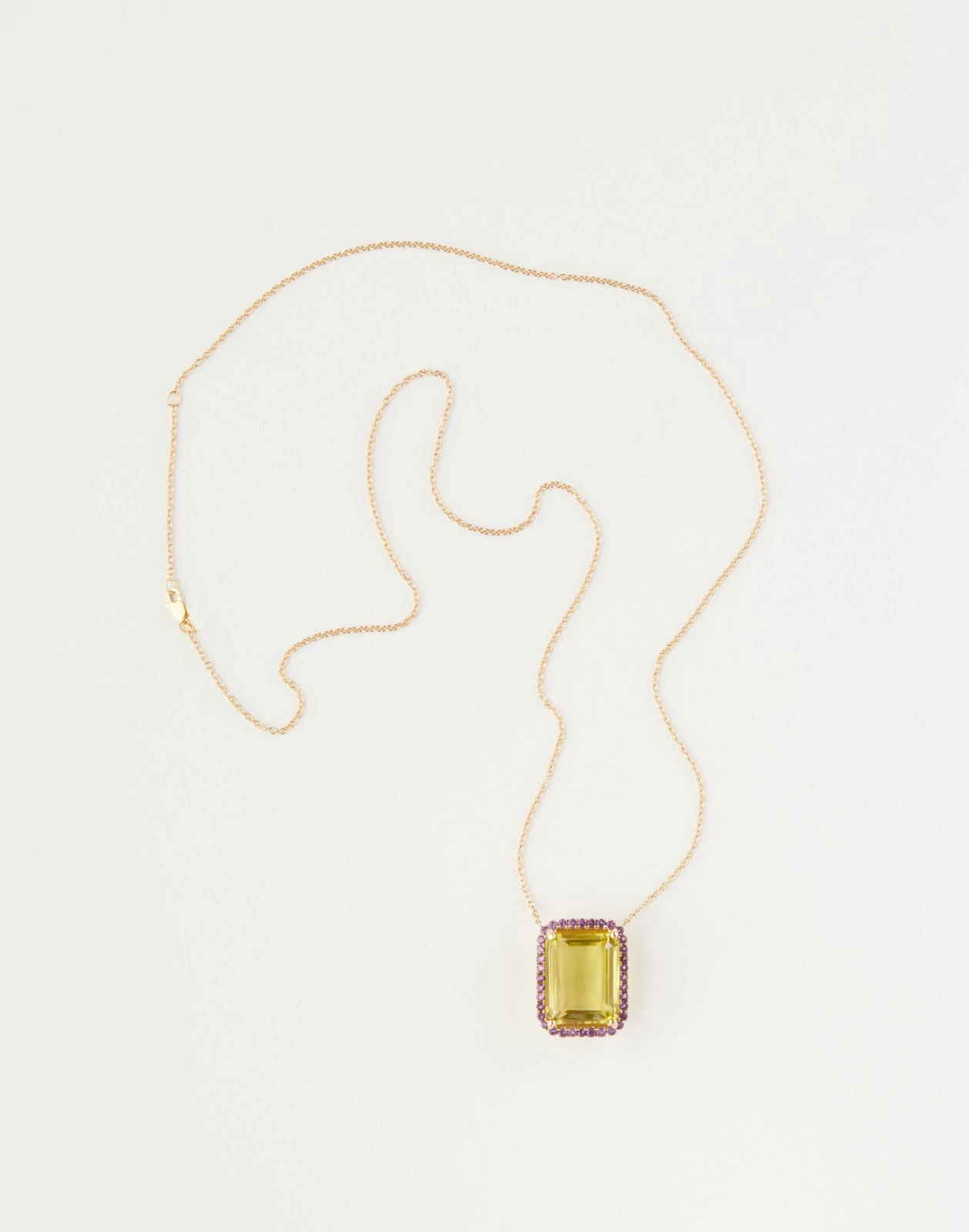 - 20mm x 16mm Emerald cut Lemon Quartz with 2mm Round