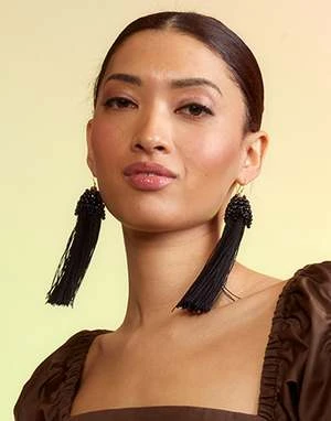 Black beaded tassel earring