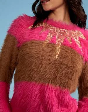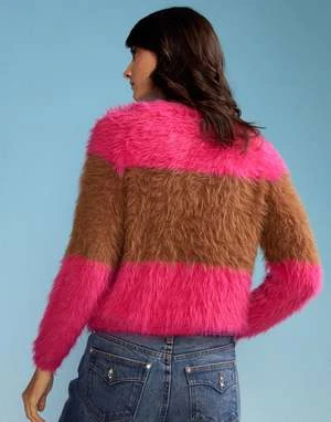 Super soft, cozy, and fuzzy striped crewneck sweater.