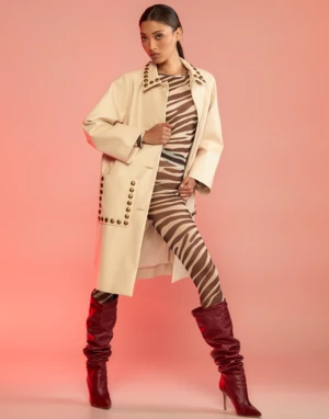Cream vegan leather studded coat.